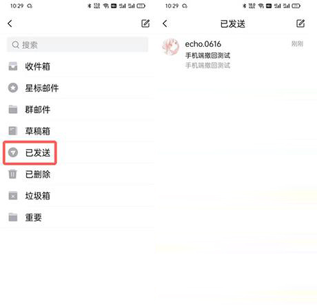 2、點(diǎn)擊【已發(fā)送】打開列表,選擇需要查看發(fā)送狀態(tài)的郵件
