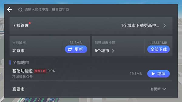 通過網(wǎng)絡(luò)可以按照需求直接下載當(dāng)前城市或附近城市。