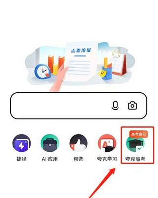 1、點(diǎn)擊打開(kāi)夸克高考app,然后點(diǎn)擊頁(yè)面上的“高考Al助手”;