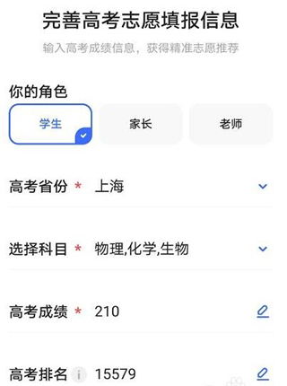 第三步、依次填入信息,小編以上海地區(qū)成績(jī)舉例
