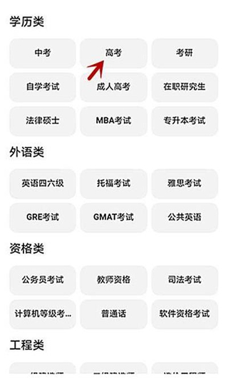 【5】在學(xué)習(xí)類中點(diǎn)擊“高考”;