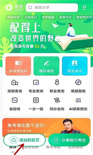 夸克高考頁(yè)面添加到首頁(yè)導(dǎo)航