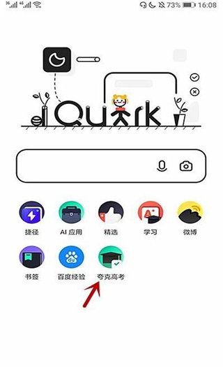 【7】返回夸克頁(yè)面即可看到“夸克高考”,以后使用時(shí)直接打開(kāi)即可。