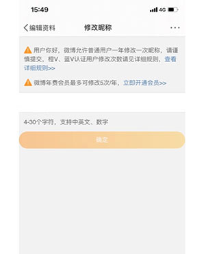 注意:微博昵稱僅支持4-30個(gè)字符以內(nèi)中英文數(shù)字。