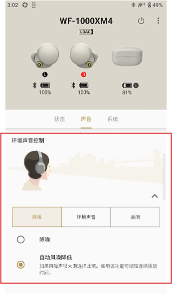 您可以在風(fēng)噪聲很大時(shí)選擇“自動(dòng)風(fēng)噪降低模式”,耳機(jī)會(huì)檢測并抑制風(fēng)噪。
