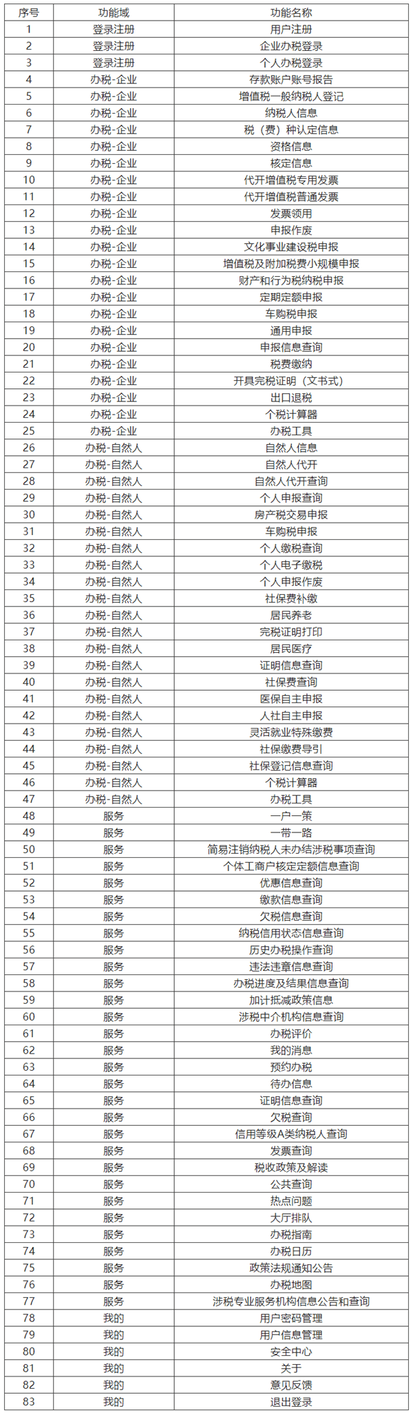 附表:山東省電子稅務(wù)局APP功能列表
