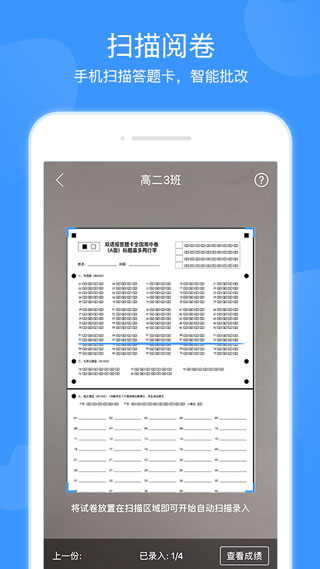 精準(zhǔn)識別考試答題卡,秒出成績。