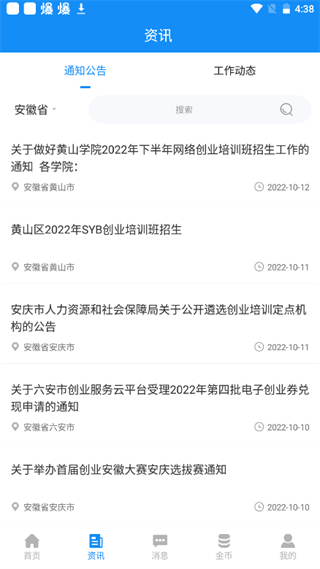 3、點擊資訊能夠查看各種通知公告、工作動態(tài)。