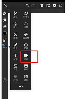 第二步:點擊左側(cè)工具欄中的【動畫】工具,如果沒在工具欄里面,可以點一下四個小正方形的圖標,會把所有的工具顯示出來,如圖所示: