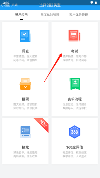 2、選擇考試創(chuàng)建類型