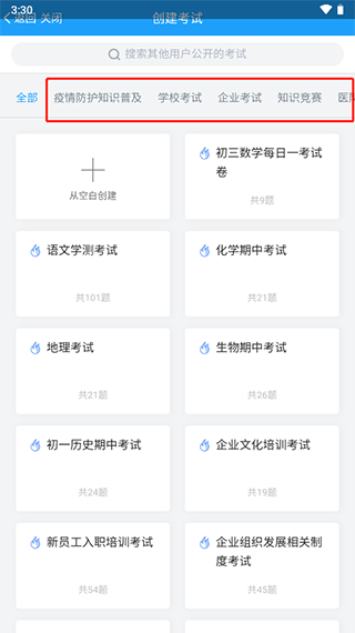 4、以學(xué)校考試為例,點(diǎn)擊空白創(chuàng)建,填寫(xiě)考試名稱,例如數(shù)學(xué)考試
