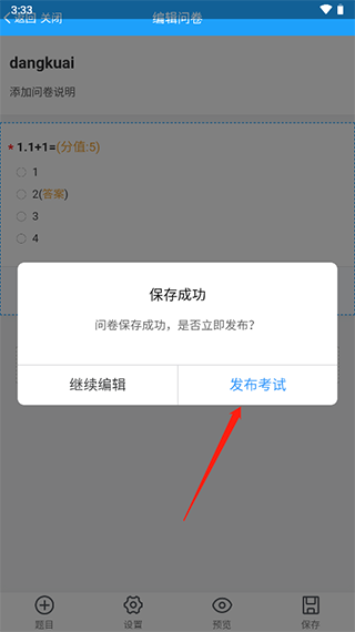 8、保存成功后,點(diǎn)擊發(fā)布考試即可