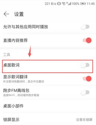 3、然后在設(shè)置頁面里就可以看到 桌面歌詞。