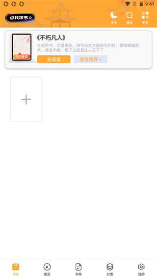 1、下載安裝后,進入首頁可以看到自己的書架,你收藏的小說都在這里,右上角還有搜索功能,輸入小說名稱就可以獲得想要的小說資源了