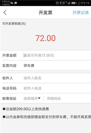 4、發(fā)票頁面上會直接顯示所有可開發(fā)票額度(金額達到200元以上免快遞費,未達到需要到付快遞費)