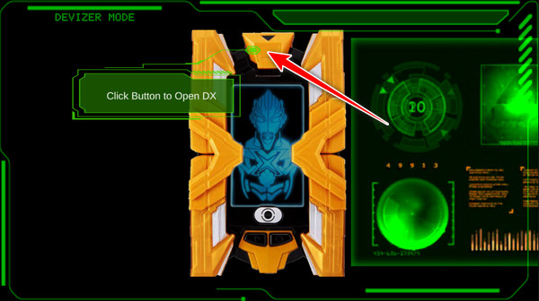 5、隨后再點(diǎn)擊終端上面的卡盒按鈕,打開DX卡牌,準(zhǔn)備召喚艾克斯奧特曼
