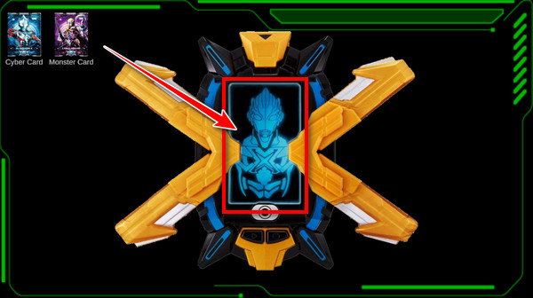 7、然后就可以插入艾克斯奧特曼卡牌了,選擇第一張艾克斯奧特曼卡牌,大喊“艾克斯前輩!請把力量借給我吧!”