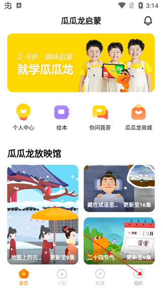 1、點(diǎn)擊我的在瓜瓜龍啟蒙app右下角點(diǎn)擊我的。