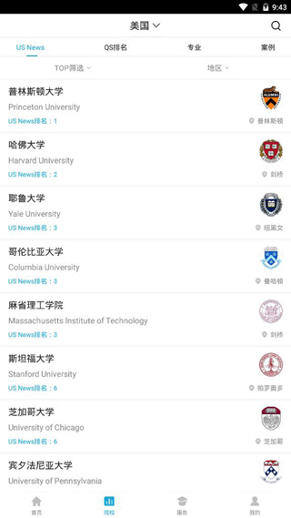 4、用戶可以點擊院校尋找自己心儀的學(xué)院觀看