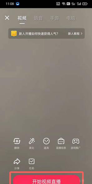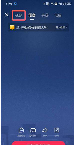 4、每次進入默認(rèn)是開通語音直播,在上方切換到【視頻】;