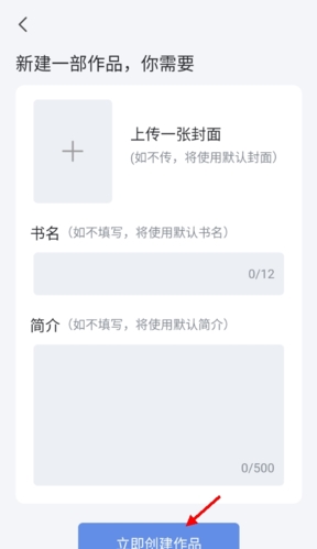 2、選擇一張封面圖片后,寫入相對(duì)于的小說各種內(nèi)容,點(diǎn)擊創(chuàng)作,就等于開始發(fā)表寫作了。