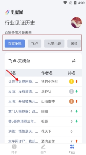 1、小黑屋之中是可以看其他作者寫的小說的,在頁面點(diǎn)擊“行業(yè)”,進(jìn)入其頁面之中。