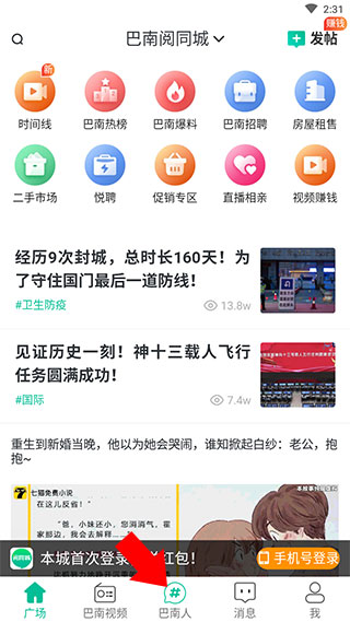 3、選擇后點擊下方巴南人即可瀏覽同城信息