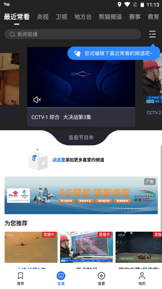 3、打造屬于自己的口袋電視,收藏、播放歷史、直播預(yù)約滿足你全方位的個(gè)性化需求。