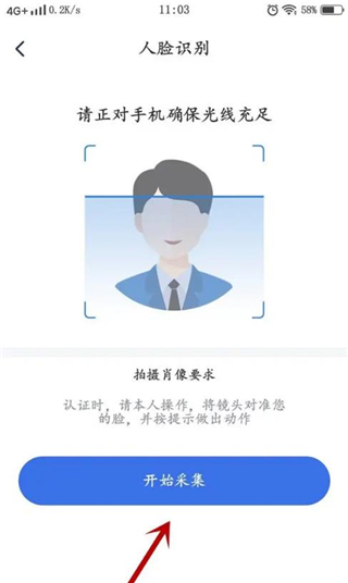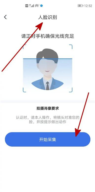 進入到身份驗證頁面,拍攝本人人臉。