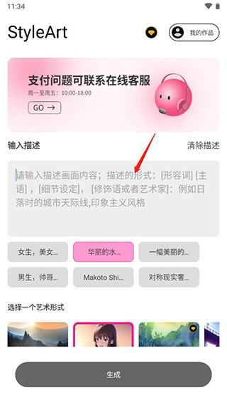 StyleArt繪畫APP最新版是一款備受好評的AI繪畫神器,為用戶提供了無盡的創(chuàng)作可能。StyleArt繪畫APP最新版能夠?qū)⒛愕恼掌⑺孛杌蚱渌麍D像轉(zhuǎn)化為各種藝術(shù)風格的繪畫作品。無論你是喜歡現(xiàn)實主義、抽象派還是寫實繪畫,StyleArt都能滿足你的需求,只需要在StyleArt繪畫APP最新版中將你的需求輸入,即可生成各種圖片,非常的有意思!感興趣的的用戶不妨來下載體驗試試看吧!