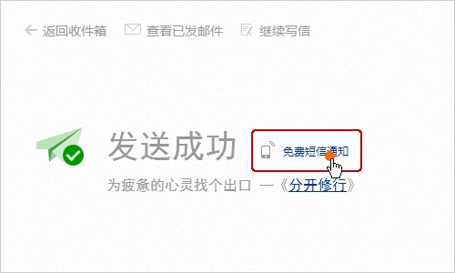 1、成功發(fā)送郵件后,在發(fā)信成功頁點(diǎn)擊“免費(fèi)短信通知”。