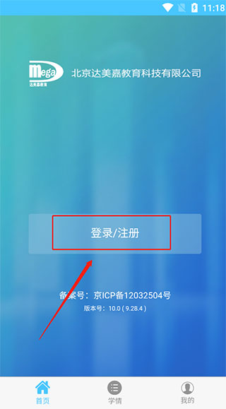 1、下載打開達(dá)美嘉家長端app,在首頁點擊【登錄/注冊】。