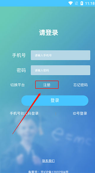 2、接著在登錄界面,點擊“注冊”按鈕。