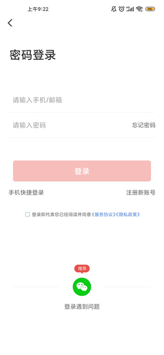 4、忘記密碼的學(xué)員,在登錄/注冊頁面,點(diǎn)擊【忘記密碼】按鈕,通過手機(jī)短信驗(yàn)證碼,即可重置登錄密碼。