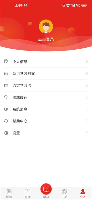 6、點(diǎn)擊導(dǎo)航欄【個(gè)人】,進(jìn)入個(gè)人空間,可以查看個(gè)人信息、項(xiàng)目學(xué)習(xí)檔案、離線緩存、幫助中心、系統(tǒng)消息、設(shè)置等。