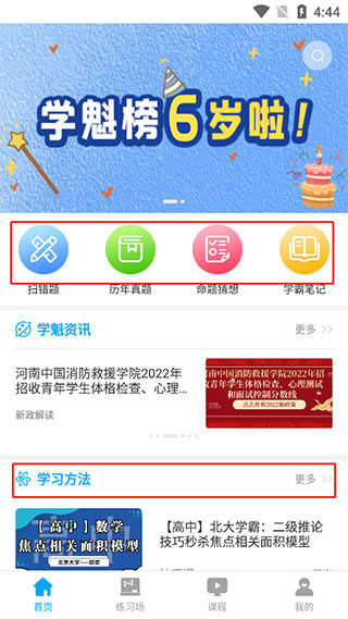 2、在【首頁】板塊,在這里有掃錯(cuò)題,歷年真題、命題猜想、學(xué)霸筆記等功能。同時(shí)你也可以在“學(xué)習(xí)方法”一欄學(xué)習(xí)學(xué)霸們的學(xué)習(xí)方法