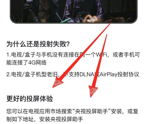 第三步,有的的電視設(shè)備這樣操作后連接不了,我們向下滑,有一個“央視頻投屏助手”的下載鏈接。