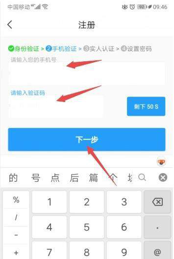 4、輸入手機號碼、驗證碼后,點擊下一步。