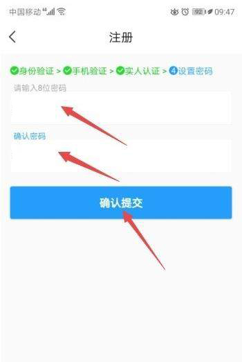 6、之后輸入密碼,再次輸入密碼,點擊提交即可注冊成功。
