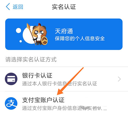2、進入實名認證,看到兩種支付方式,選擇支付寶賬戶認證;