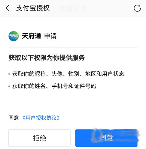 4、然后就會出現(xiàn)授權申請,點擊同意支付寶授權,授權成功后即綁定支付寶并且完成實名認證。