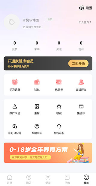 1、【首頁(yè)】界面我們可以在這里看到四個(gè)特色板塊,它們分別是寶媽必修、人格培養(yǎng)、學(xué)習(xí)引領(lǐng)、青春引領(lǐng)。