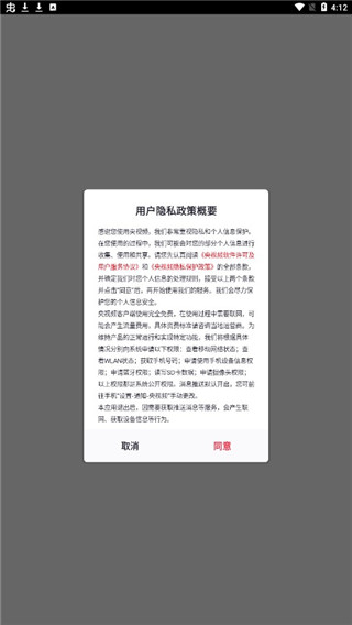 2、點(diǎn)擊同意央視頻軟件許可及用戶服務(wù)協(xié)議和央視頻隱私保護(hù)政策。