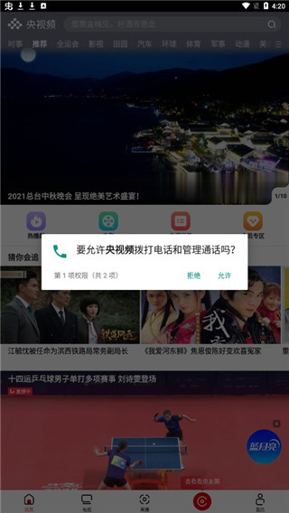 3、點(diǎn)擊允許央視頻撥打電話和管理通話。