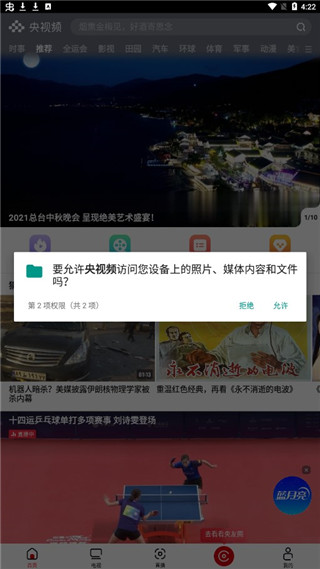4、點(diǎn)擊允許央視頻訪問(wèn)您設(shè)備上的照片、媒體內(nèi)容和文件。
