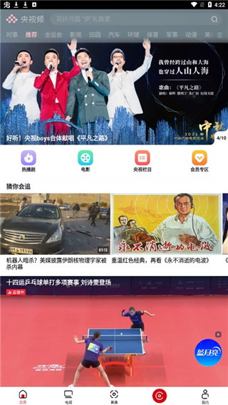 5、點(diǎn)擊首頁(yè),軟件首頁(yè)里面有各種熱播劇、電影、央視欄目推薦還有很多的實(shí)時(shí)熱點(diǎn)和資訊。