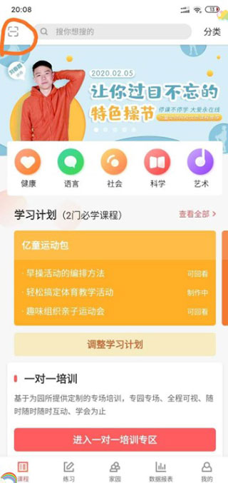 5、點擊"億童幼師網(wǎng)校"中的"掃一掃"掃描"邀請二維碼"加入園所