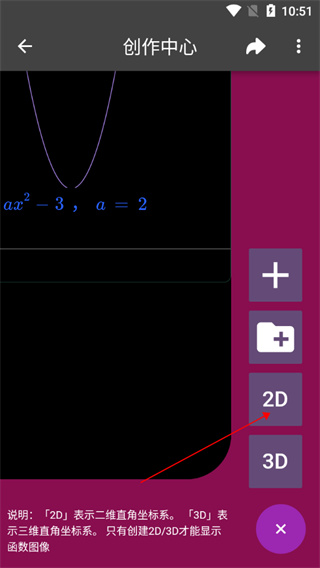 2、點(diǎn)擊右下角的“+”,選擇2D;