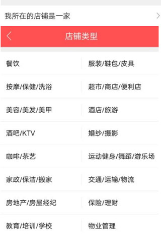 4、然后點擊“我所在的店鋪是一家”選項選擇店鋪的類型。