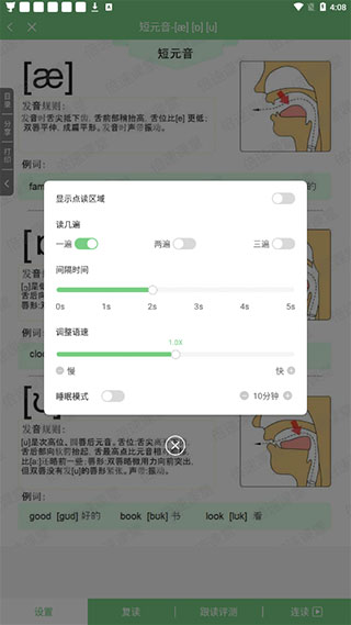3、免費課本點讀,同步課本點讀,有復讀、跟讀、連讀、口語評測等功能。
